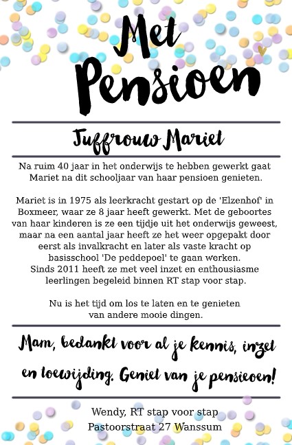 Mariet gaat na het schooljaar 2021-2022 genieten van haar pensioen.